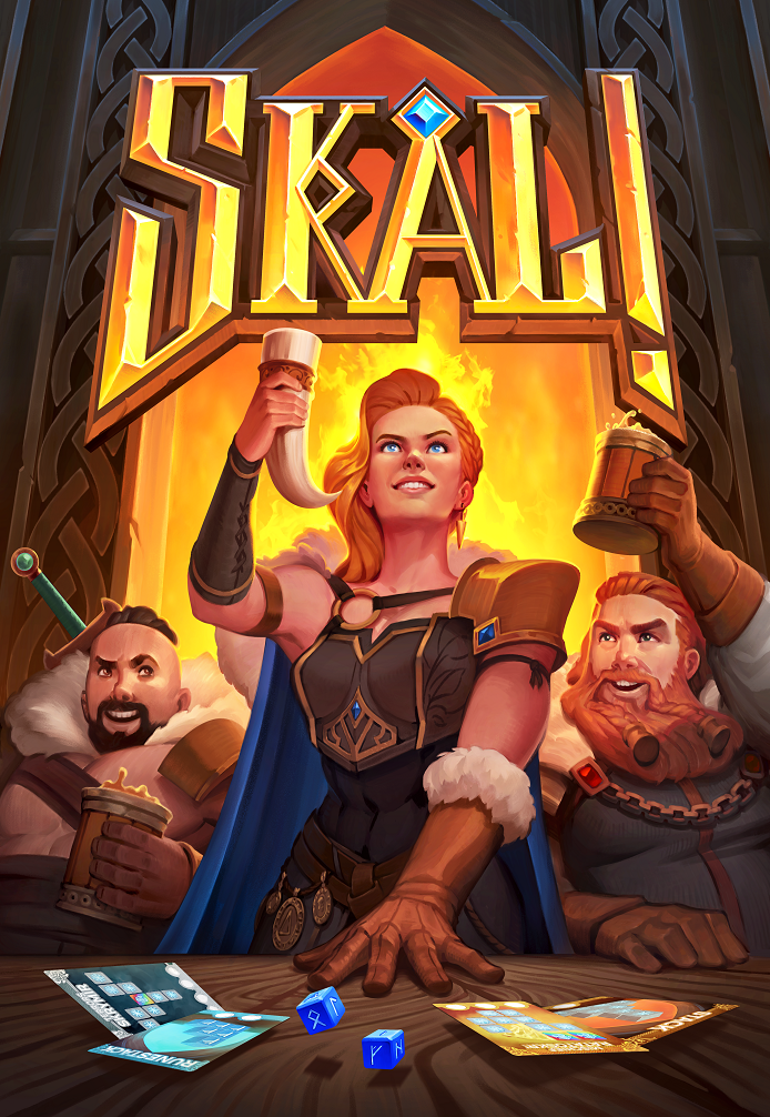 SKÅL! is a Norse-themed dice-stacking, card-collecting game. It can be played as a fun game for all the family or (if you choose) a rowdy adults-only drinking game! The players are Norse warriors, sitting in their longhouse, home from going a-Viking. They are laughing, stacking runestones and raising toasts to their Gods and Goddesses. The atmosphere is happy and everyone is having fun.
